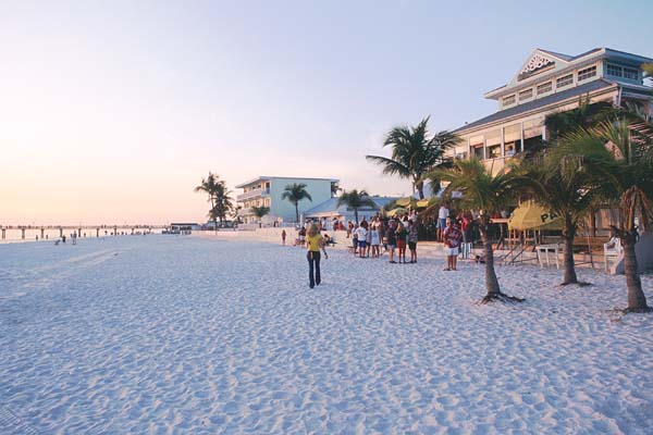- Ft. Myers Beach -- the largest white sand beach in the area. Spanning seven miles, this area includes several restaurants, resorts and boutique shops. The area is also accessible by a boat shuttle from Tarpon Point Marina.